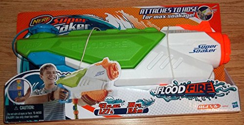 Product Description NERF SUPER SOAKER FLOOD FIRE WATER GUN IT IS BRAND NEW IN THE BOX IT CONNECTS DIRECTLY TO YOUR HOSE SO IT NEVER RUNS OUT OF WATER SQUIRTS UP TO 38 FEET 0
