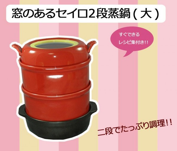 | 2段にしてたっぷり調理できます。セイロを外して普通のお鍋としても使用可能。すぐできるレシピ集付き! |
