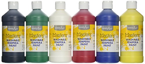 Fine quality and economical paint a great combination for the beginning artist. Bright and rich opaque color offers endless creativity and color blending possibilities. Washes out of most fabrics with soap and water. Color(s): Assortment: includes White Yellow Red Blue Green and Black; Capacity (Volume): 16 oz; Packing Type: Plastic Bottle; Number of Colors: 6.
