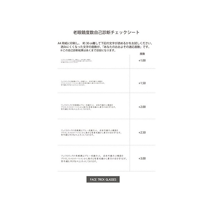 원본상품명: (フェイストリックグラッシズ )Face Trick glasses 老眼鏡 鯖江メカ高性能レンズ RG3131-2LG +1.50(弱中)