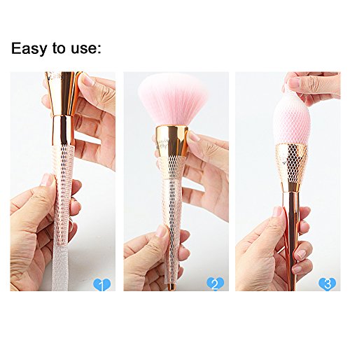 STRETCHY MESH COVER: the mesh cover is odorless and stretchy with good quality,The makeup brush pen guard cover is suitable and re-usable for those brushes in all sizes, which works well on medium and large sizes brushes; But not for too small brushes like lip brush or eyeliner brush
