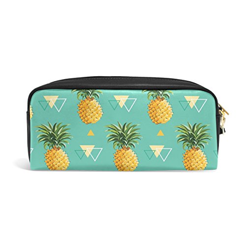 YZGO Geometric Pineapple Pencil Case Portable Pen Organizer Bag PU Leather Large Capacity
