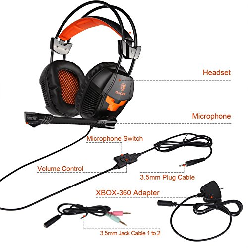 Sades 921S 3.5mm plug Over Ear Wired Stereo Headset Gaming Earphone Bass Noise Canceling Isolating Headphones with Mic for PC Gamer Tablet Laptops Mobile Phone MP3 MP4