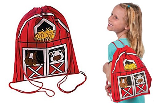 -. Binding : Toy -. Brand : happy deals -. Department : unisex-child -. Feature : are great for toting around small books, lunches, light school supplies and more Size: 11 1/4" x 13 3/4" Nylon Set of 12 -. IsAdultProduct : 0 -. Label : toyco -. Manufacturer : toyco -. PackageQuantity : 12 -. ProductGroup : Toy -. ProductTypeName : TOYS_AND_GAMES -. Publisher : toyco -. Studio : toyco -. Title : Farm Animal Party barnyard drawstring backpacks - Set of 12