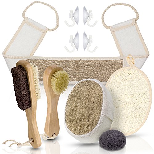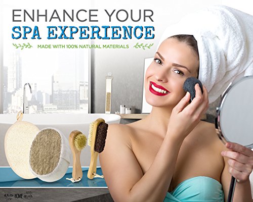 - NATURAL LUFFA SPONGE MATERIAL – Never struggle to get to that impossible-to-reach part of your back, or get out of the bath only to realize you missed a spot. With your complete set of 6 different sponges, brushes, and scrubbers including: Charcoal Konjac Sponge, Facial Dry Brush, Loofah Sponge Pad, Loofah Back Scrubber, Cleansing Soft Sponge, and Pumice Foot Stone, you’ll be sure every nook and cranny gets the attention it deserves, at last.