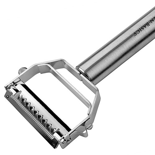 - Title : Kitchen Basics® Heavy Duty Commercial Grade Amazing 2-in-1 Peeler - Julienne Peeler / Peel, Slice, Grate, Shave, Shred and Garnish Vegetables & Fruits with Speed and Ease / High Quality Stainless Steel, Ultra-Sharp Blades / Peel in Any Direction; Cut Prep Time in Half / Also Grate Cheese, Can Peel Pineapples