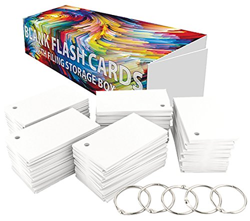 Debra Dale Designs 1,100 Small Blank Study Flash Cards - 110# White Smooth Index - Single Hole Punched with 5 Metal Binder Rings - 2" x 3-1/2". Best For Learning Languages