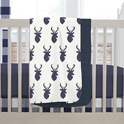 -. Title : Carousel Designs Navy Deer Woodland Crib Blanket