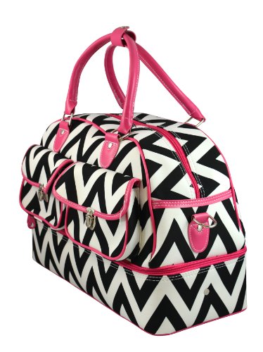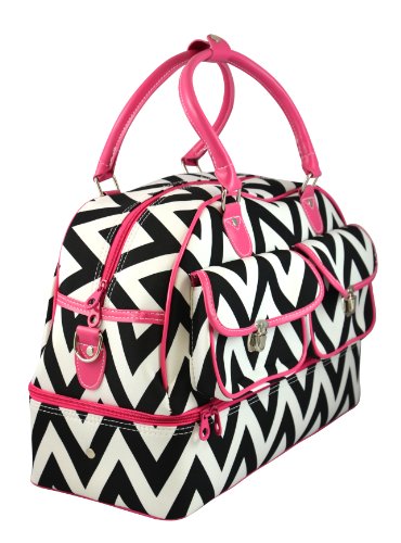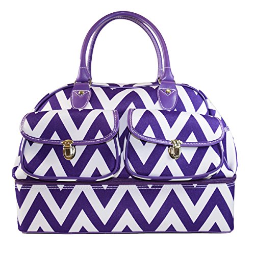 -. Brand : Ever Moda -. Department : womens -. Feature : Metal feet allow stability to bag when setting down and keep space between bottom of the bag and floor / Front one exterior zip pocket and two buckle pockets / Contains a bottom zipper compartment for shoe, etc / Measures 18"W_12"H_8"D, 7" Handle Drop / Adjustable, detachable non-slip padded shoulder straps -. ProductGroup : Apparel -. ProductTypeName : LAGE -. Title : Ever Moda Large Duffle Bag W/Extra Compartment EM9417