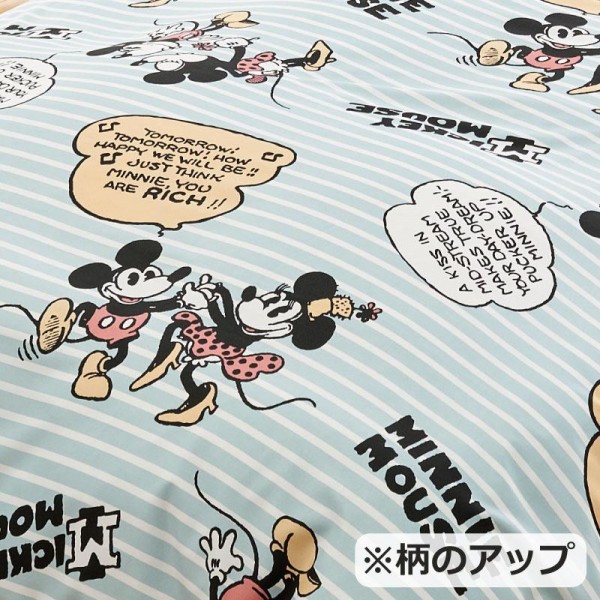 | 全周ゴムでカバーをかけるのもラクラクミッキーとミニーが全面にプリントされた ポップなヴィンテージ柄です通年使えるさらっとした素材が気持ちいい |