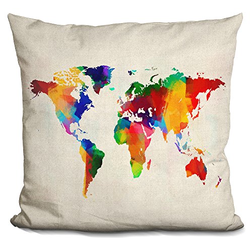 LiLiPi World Map Sponge Paint Decorative Accent Throw Pillow