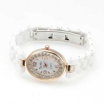 ※こちらの商品はメール便限定 送料無料です。※メール便は代引き不可です。※メール便は到着指定できません。※代引きご希望の方は、別途宅配便送料を加算させて頂きます。ピンクゴールドのオーバルフェイスにラインストーンが散りばめられたレディース腕時計。着こなしを選ばないベーシックなデザインながら、スーツはもちろん、カジュアルな着こなしにも幅広く対応できます。■サイズ文字盤:24mm×30mm/厚さ:8mmベルト:幅15mm/腕周り170mmピンを外してベルトのサイズ調節が可能です。■重さ■30g■仕様クォーツ(電池式)素材:ステンレススティールバック、プラスチックベルト ■付属品6ヶ月間有効の保証書