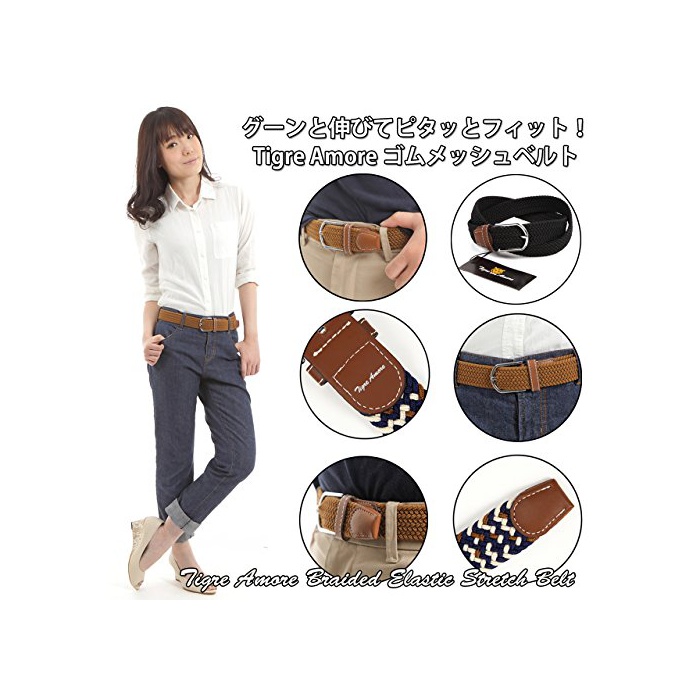 Tigre Amore(띠그레 《아모레》) 맨즈 레이디스 패션 뜨기 오 보 메쉬 벨트 고무 벨트