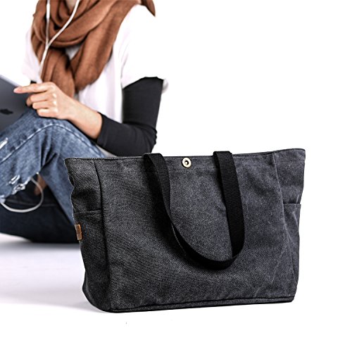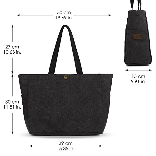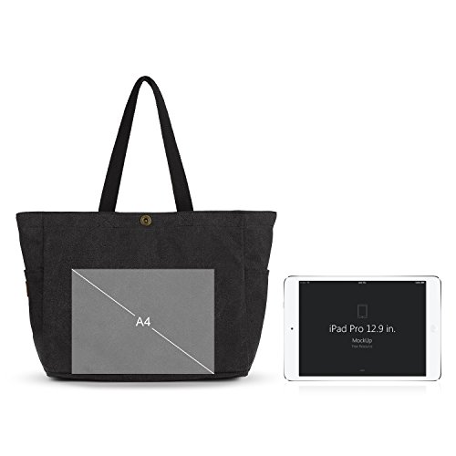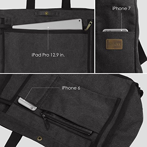 Product Description By integrating the character of the American cowboy, SMRITI reveals the timeless culture and heritage of the wild "West". High Density Canvas Fabric Made of durable thick cotton canvas, the tressure points on the bag are double stitched for durability, keeping your bag from ripping and making it durable to last for years. It's extremely sturdy and also easy to wash. Premium Material Cotton canvas fabric Bronze hardware Leather logo trim Zip top closure with press stud fastening Dual long reinforced webbing handles Excellent Organizer A roomy tote with casual looks allows you to carry on all your essentials. Spacious to hold iPads, laptops, folders, A4 files, books, water bottles, laundries, groceries and more. Interior zipper pocket is big enough to fits 12.9″ iPad Pro. 6 Pockets: 1 large main compartment 2 side pockets 1 interior zip pocket 2 interior slip pockets A Bag for Any Event Grocery shopping bag, school bag, travel bag, beach bag, diaper bag. Just name it. This wonderful tote will gives you more. Perfect for grocery shopping, gym, school, work, travel, overnight trips or everyday use. Specifications Weight: 23.9 oz Dimensions: 15.4 × 5.9 × 11.8 in 0
