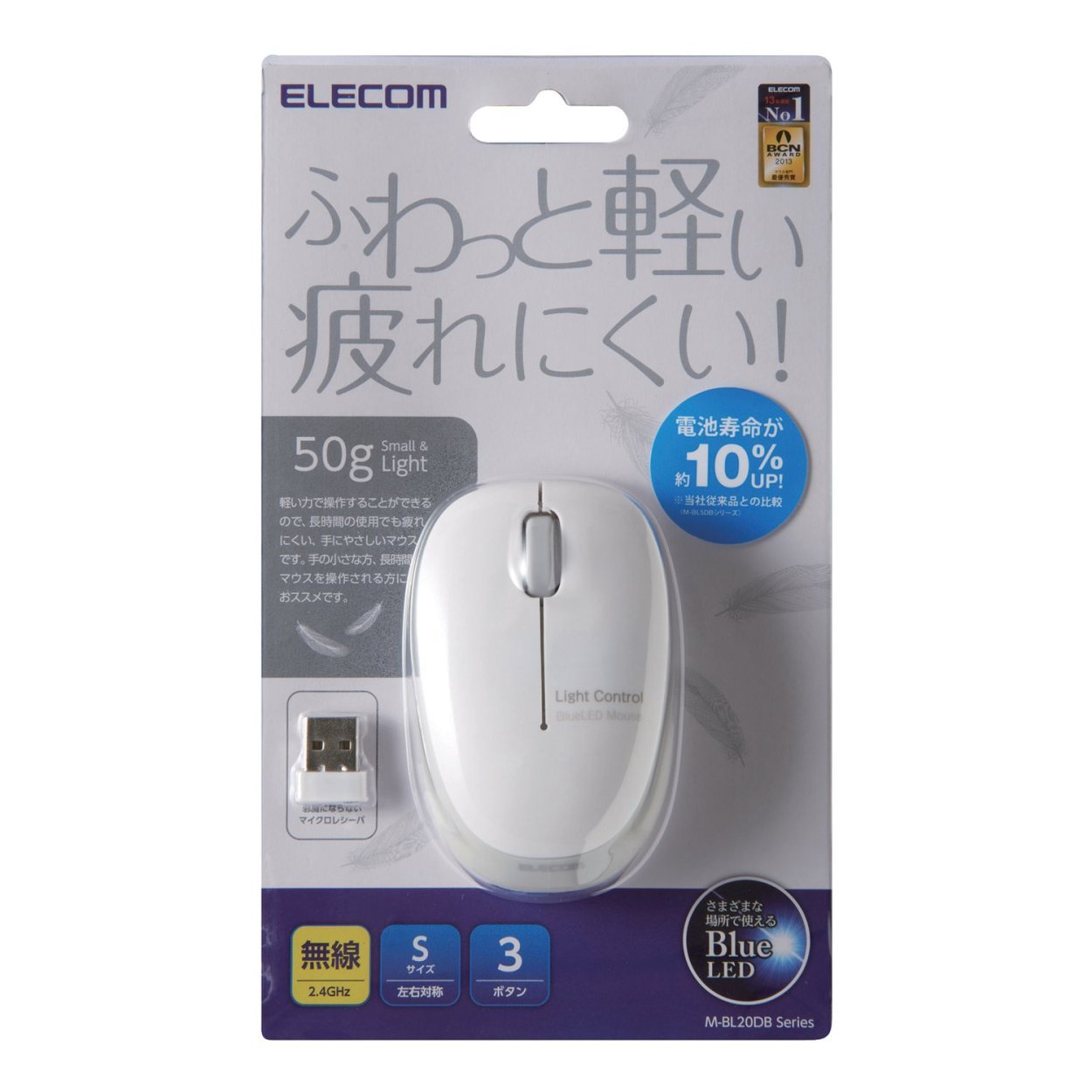 With a small and lightweight design of only 50 g, it is a hand-friendly mouse that can be operated with light force.