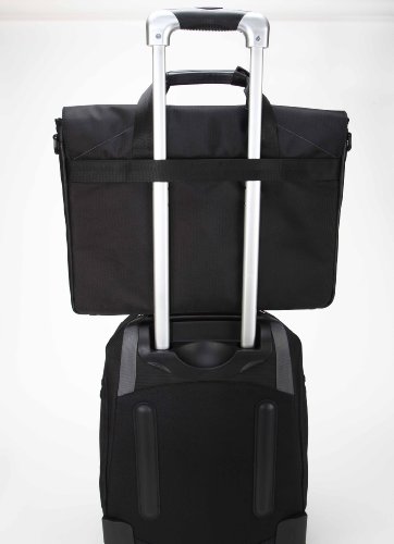 - Feature : Designed to fit 15.6 inch laptops / Deluxe work station with pen loops, key fob, phone holder, business card holder / Two stash pockets for storage / Padded shoulder straps and soft-wrapped handles with snap buttons / Roomy bag without added bulk / Limited Lifetime Warranty: At Targus, we stand behind all of our products. We offer one of the most comprehensive warranties in the industry so you and your device are covered.