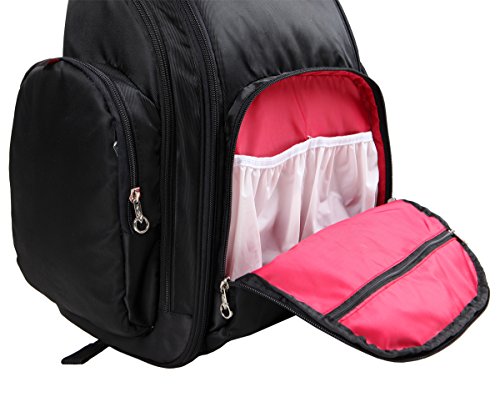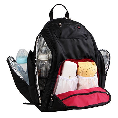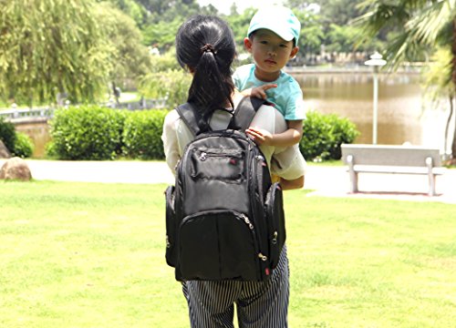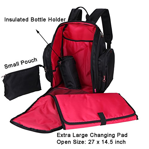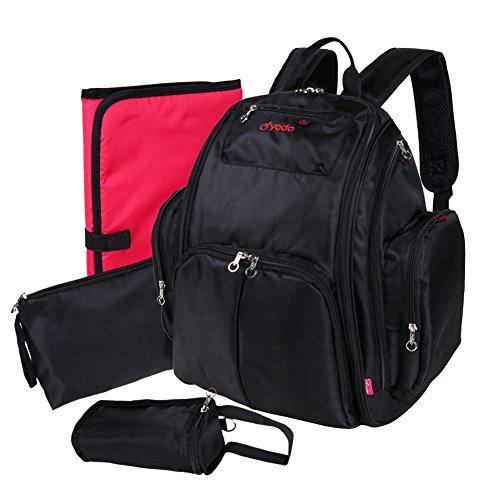 Yodo Upgraded Baby Diaper Backpack Bag for Mom Dad - Plus Extra-Large Baby Changing Pad, Small Pouch and Feeding Bottle Holder - 14 Pockets - Soft Twill Fabric, Black