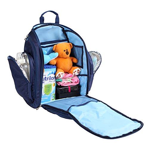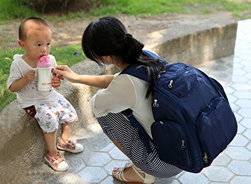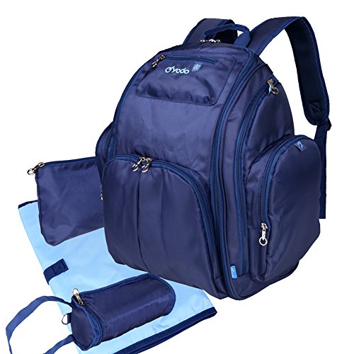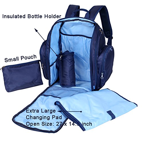 Yodo Upgraded Baby Diaper Backpack Bag for Mom Dad - Plus Extra-Large Baby Changing Pad, Small Pouch and Feeding Bottle Holder - 14 Pockets - Soft Twill Fabric, Navy