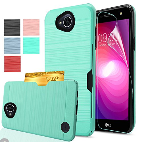 LG X Power 2 Case (LG Fiesta LTE/X Charge/K10 Power Case) with HD Screen Protector,AnoKe[Card Slots Wallet Holder]TPU Soft Hybrid Shockproof Heavy Duty Brush Cover Cases for LG LV7 KC2 Mint