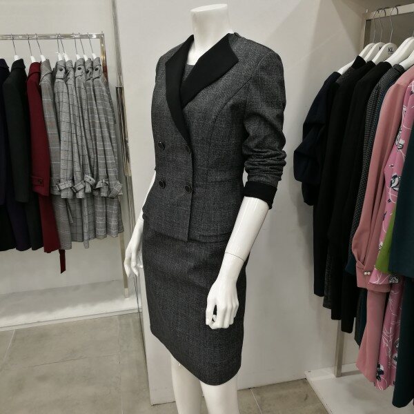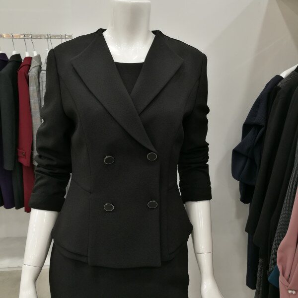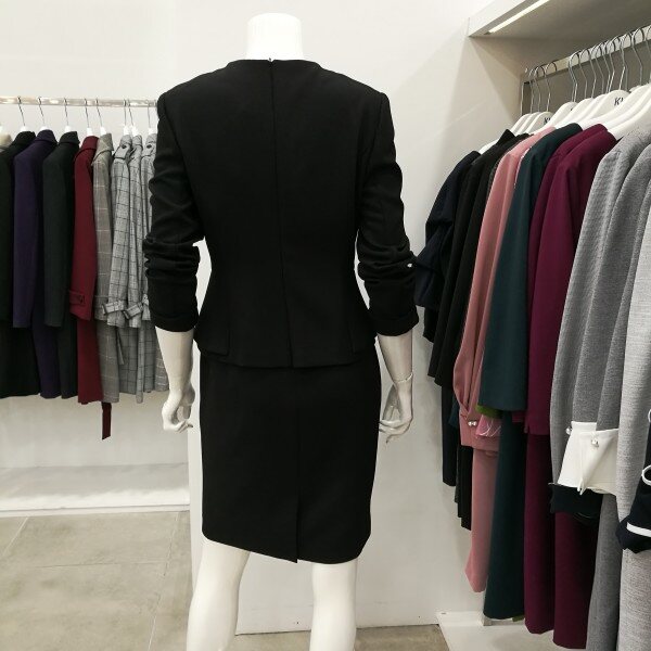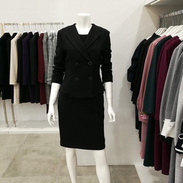 정말 스타일 잘 나왔어요. 완전 투피스모양의 원피스로 상의가 약간짧게나와 길~어보이는 효과도 있고 코디할때 신경안써도 되고 다 아시죠? 배부분 커버 다 된다는사실,격식있는 자리에 가도 손색이 없을정도로 아주 깔끔한 정장원피스입니다.