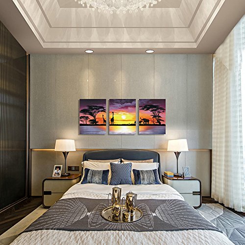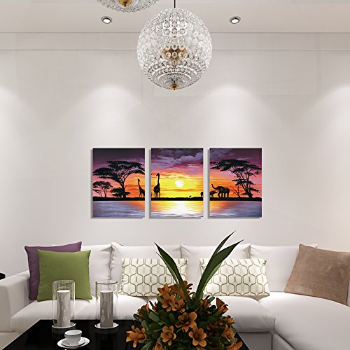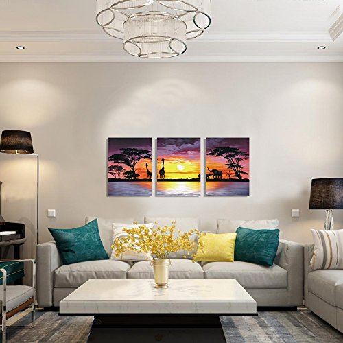 Stretched and Framed canvas painting ready to hang for home decorations, each panel has a black hook already mounted on the wooden bar for easy hanging out of box.