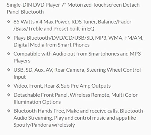 Discover all the audio options to get your vehicle rocking with the BOSS Audio BV9986BI. Tune into your favorite radio station, pop in a CD or DVD, or hook up your smartphone or MP3 player to the Auxiliary input. You can also plug into the SD and USB ports to play your personal playlists. Bluetooth technology lets you stream audio apps like Pandora and Spotify and make calls hands-free. Choose your look with the Multi-Color Illumination Options and sound style with the built-in Preset EQ. Make easy adjustments with the wireless remote, touchscreen and your existing steering wheel controls (interface required, not included). The front panel quickly detaches for peace of mind when you leave the vehicle. Take your journey to the next level with the Boss Audio BV9986BI. For further product details, please scroll down.Feature