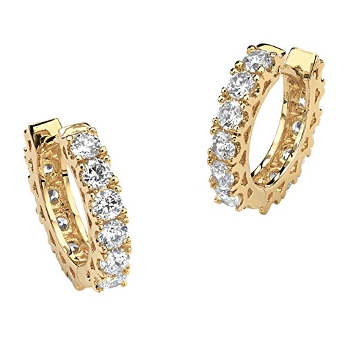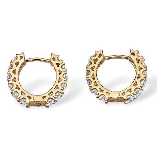 This sparkling pair of cubic zirconia huggie-hoop earrings lends a sophisticated flair to your day into evening wardrobe. 2.40 carats T.W. Plated in 14k gold. .5" inside diameter. (All carat weights are approximate and may vary slightly from those listed.) - 49680Feature