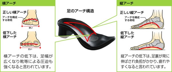 アーチサポート機能により、足の形状(アーチ)を正しく支えてトラブルの原因と言われる骨格の崩れを予防します。