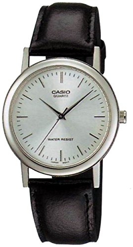 Brand, Seller, or Collection Name:Casio Model number:EAW-MTP-1095E-7ADF Part Number:MTP1095E-7A Item Shape:Round Dial window material type:Mineral Display Type:LCD Clasp:Buckle Case material:Stainless steel Case diameter:34 millimeters Case Thickness:9 millimeters Band Material:Calfskin Band length:Men's Standard Band width:20 millimeters Band Color:Black Dial color:Silver Calendar:No Special features:measures-seconds Item weight:4 Ounces Movement:Quartz Water resistant depth:30 Meters
