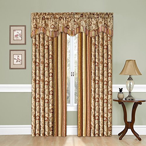 Refresh any room in your home with classically elegant window treatments by Traditions by Waverly. This beautiful, traditional panel features a Jacobean floral pattern over a damask jacquard fabric. Each curtain panel measures 52wide x 84Long. Hang two panels with the coordinating valance on a standard or decorative curtain rod for desired look. Coordinating valance sold separately. 2 inch header adds decorative style. 3 inch rod pocket accommodates up to a 2.5 inch rod. Curtain rod sold separately. 100percent polyester, unlined. Machine wash cold, gentle cycle. Tumble dry low. Imported.Feature