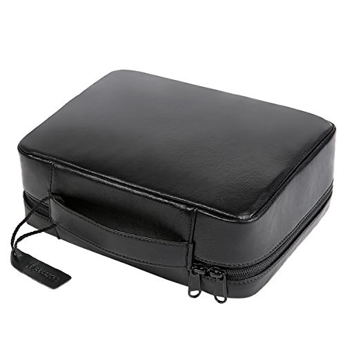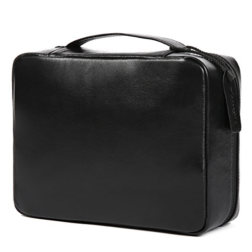 Genuine Leather Toiletry Bag/Leather Dopp Kit/Leather Shaving Kit Unisex- Black by 40000KM