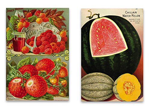 - Vintage Garden Fridge Magnet Gift Set includes Beautiful Colorful Fruit & Melons Refrigerator Magnets, Set of 2, Floral Seed Catalog Illustrations of Flowers for Kitchen Art, Office Decor, Gardener Gift for Adults, Kids, Men & Women