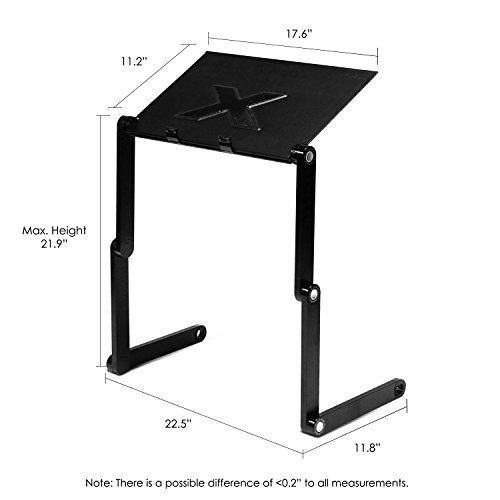 - Feature : Made from 100% Aluminum Alloy for firmness and stylish look / Multipurpose: random height and multiple angle adjustment / Built-in with Large X-shaped USB fan / Suitable for Laptop 17 or smaller; Reading books, tablets / No assembly Required; Product Dimension: 22(W)x11.4(D)x1.38(H) Inch