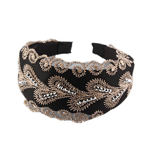 100% brand new and high quality Made of alloy, lace,rhinestone,satinfabric, which is eyecatching and not easy to deform Great hair accessories and hair jewelry for women Traditional lace embroidery on hair hoop Width: approx. 6.5mm/2.56inch Package Includes: