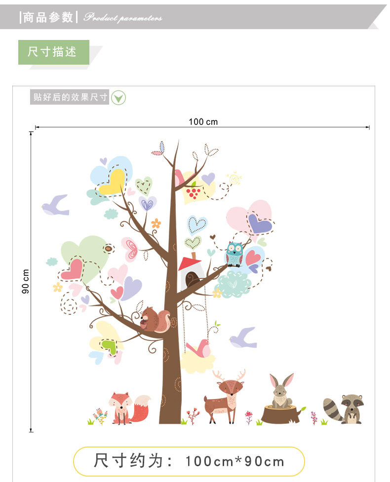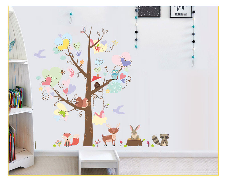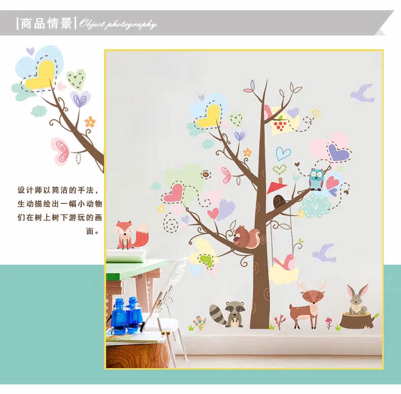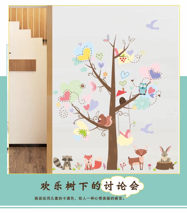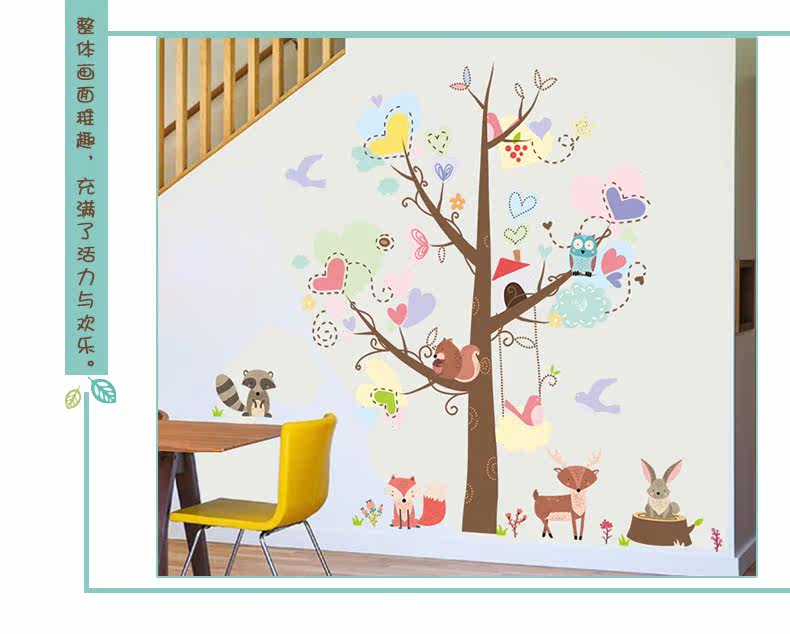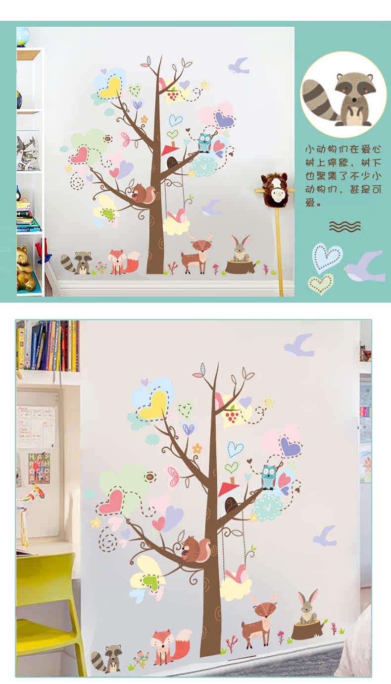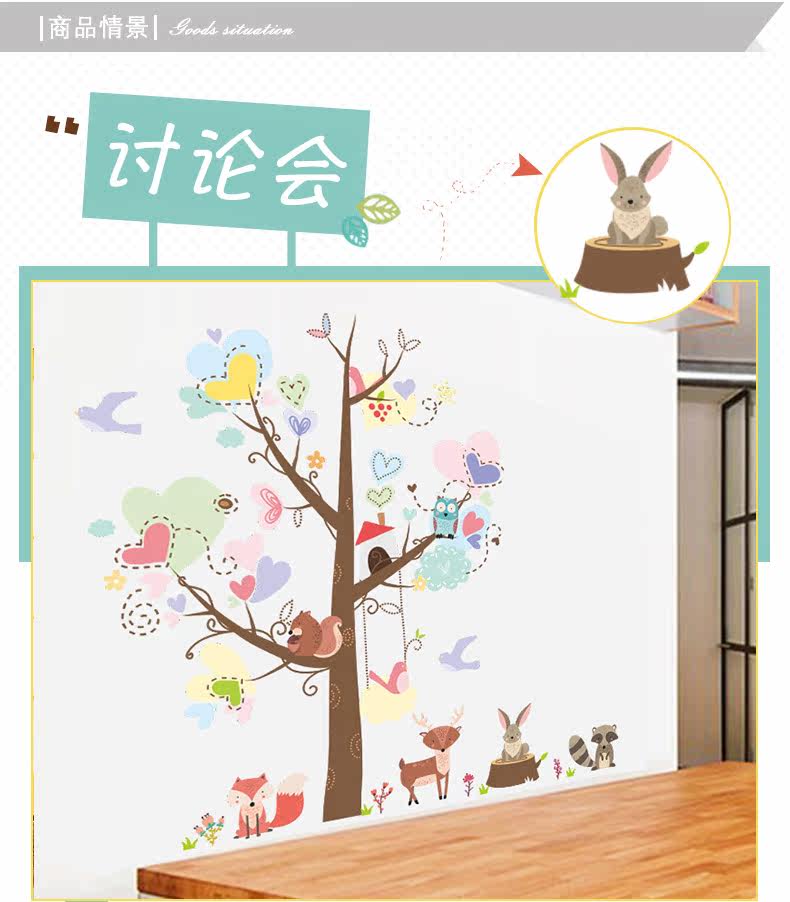 儿童卧室幼儿园可爱创意卡通狐狸兔子松鼠动物环保可移除装饰墙贴