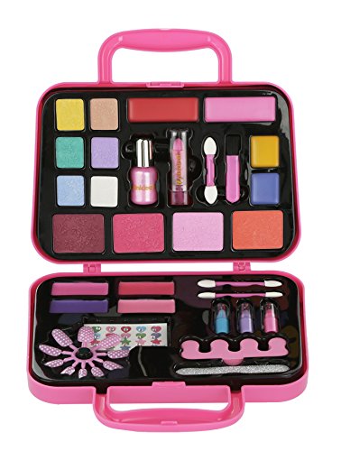 PINK PLASTIC CABOODLE CASE: All contents of our bestselling girl cosmetics set & nail kit are packages beautifully in a pretty pink case. A handle has been added, allowing her to easily grab the pack when on the go.