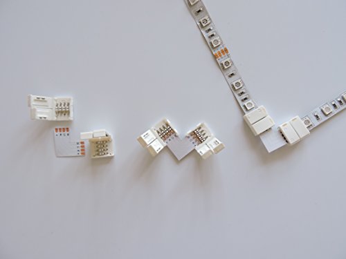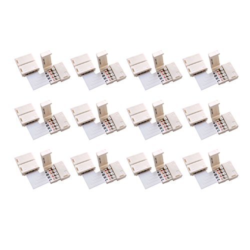 AspenTek 4 Pin 90 Degree Right Angle Corner Connector LED Strip Light Connector Adapter for DC 12v 2835 5050 RGB Color Changing Led Light Strip, No Need Soldering (12 PCS 10mm L Shape RGB Connector)