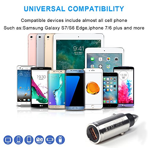 Fast Car Charger USB,Rapid Quick Car Charger For Galaxy S7 S6 Edge S8 Samsung Note 5 4 Android Cell Phone USB Charge 3.0 Adaptive Charging Adapter For IPhone 7 6s 6 Plus 5S 5C SE,LG V20,Ipad HTC