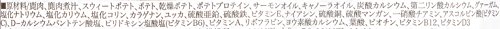 素材構成:粗蛋白質・・・6.0%以上、粗脂肪・・・4.0%以上、粗繊維質・・・2.0%以下、水分・・・78%以下
