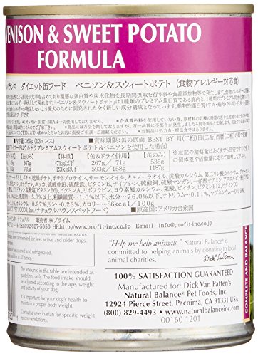 原材料:スウィートポテト、鹿肉煮汁、鹿肉、ポテト、ポテトプロテイン、乾燥ポテト、キャノーラオイル(天然混合トコフェロールで酸化防止)、サーモンオイル(天然混合トコフェロールで酸化防止)、ナチュラルフレーバー、Lアスコルビン2ポリフォスフェイト(ビタミンC)、ビタミンE、一硝酸チアミン、ナイアシン、D-カルシウムパントテン酸塩、ビタミンA、リボフラビン、ビタミンD3、ビタミンB12、ピリドキシン塩酸塩、葉酸、ベニソンミール、亜鉛蛋白、硫酸亜鉛、硫酸鉄、鉄蛋白、硫酸銅、銅蛋白、硫酸マンガン、マンガン蛋白、ヨウ素酸カルシウム、亜セレン酸ナトリウム、グァーガム、塩化カリウム、塩、トリポリリン酸ナトリウム、塩化コリン、カラゲナン、タウリン、ユッカシジゲラエキス、ローズマリーエキススウィートポテト、鹿肉煮汁、鹿肉、ポテト、ポテトプロテイン、乾燥ポテト、キャノーラオイル(天然混合トコフェロールで酸化防止)、サーモンオイル(天然混合トコフェロールで酸化防止)、ナチュラルフレーバー、Lアスコルビン2ポリフォスフェイト(ビタミンC)、ビタミンE、一硝酸チアミン、ナイアシン、D-カルシウムパントテン酸塩、ビタミンA、リボフラビン、ビタミンD3、ビタミンB12、ピリドキシン塩酸塩、葉酸、ベニソンミール、亜鉛蛋白、硫酸亜鉛、硫酸鉄、鉄蛋白、硫酸銅、銅蛋白、硫酸マンガン、マンガン蛋白、ヨウ素酸カルシウム、亜セレン酸ナトリウム、グァーガム、塩化カリウム、塩、トリポリリン酸ナトリウム、塩化コリン、カラゲナン、タウリン、ユッカシジゲラエキス、ローズマリーエキス