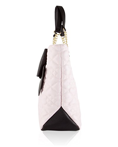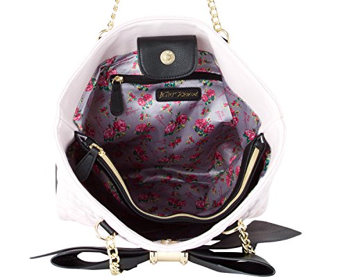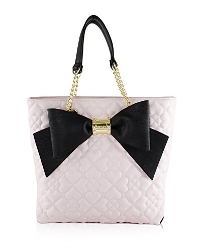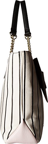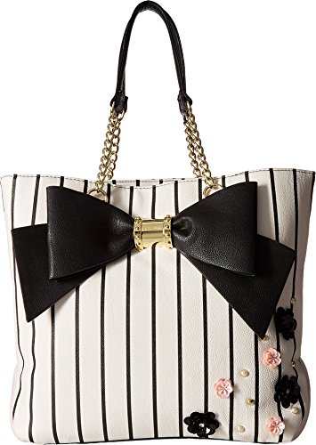 -. Brand : Betsey Johnson -. Department : womens -. Feature : Magnetic snap Closure, Dual chain detail handles with 9" drop / PVC striped P.R.Inted exterior, Signature Black big bow and Sequin Flower embellishment / Includes detachable Blush rose quilted wrist-let zipper clucth pouch with removable strap / Triple multi compartment lined interior, center zipper pocket devider, Back wall zip and 2 slip pockets / Tote: 13 x 14 x 4 Inches (WxHxD) Wristlet Purse: 11 x 7 x 1 -. Label : Betsey Johnson -. Manufacturer : Betsey Johnson -. Model : BR24815 -. ProductGroup : Shoes -. ProductTypeName : HANDBAG -. Publisher : Betsey Johnson -. Size : One Size -. Studio : Betsey Johnson -. Title : Betsey Johnson Womens North/South Tote