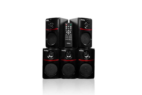 Frisby FS-5010BT Bluetooth 5.1 Speakers provides clear sound from all satellite speakers and woofer from up to 30 feet away. You can sync any Bluetooth enabled device; your phone, tablet, media player or even your computer. The subwoofer features an LCD screen that makes it easy to see which track you're playing or adjust EQ level or volume. Frisby FS-5010BT supports Bluetooth 5.1 technology for streaming audio wireless from devices that are Bluetooth-enabled. For other non-Bluetooth devices, there is a 3.5mm auxiliary input ports. Additional conveniences include an LCD display and included remote control. You've got full power to fill your room with big, balanced sound. Both speakers and the subwoofer are magnetically shielded to provide the protection against image distortion from external electronic sources. Compatible with all PC models, Labtops, smartphones and all mp3 players, IPOD, discmans, walkmans equipped w/ headphone jack. The system is complete, comes with all necessary cables. The included remote control has controls for bass and treble EQ, volume, play/pause, previous/next track, Bluetooth sync and power. The speaker also has an LCD display and volume/sync buttons. WARRANTY : 1 year warranty exchanges for factory defects.Feature