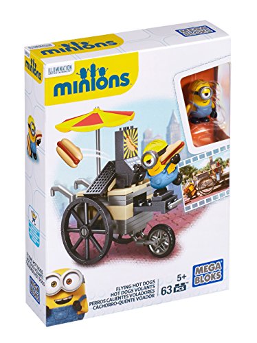 Chaos is served when Stuart fires up the grill of his very own hot dog stand! Build Stuart and his food cart to dish out some Flying Hot Dogs by Mega Bloks Minions! Wheel in the food cart and open the hidden compartment to find four stashed hot dogs. When the orders start flooding in, use the grill to launch the hot dogs into the air, and keep Stuart on top of the rush! Ideal for ages 5 and up.Feature