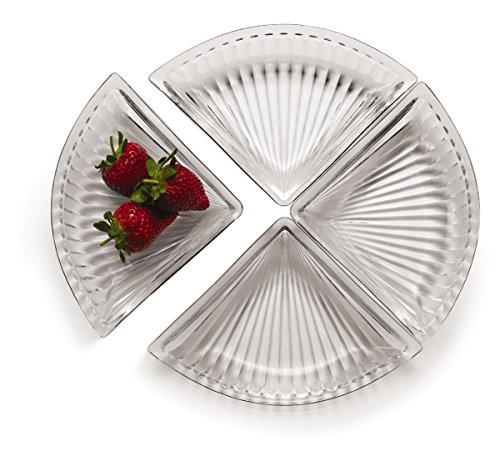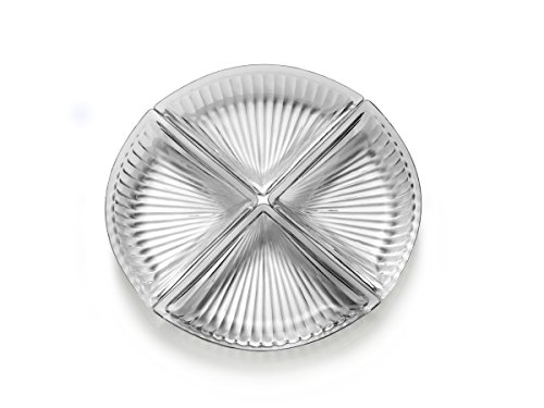 Studio : Mikasa Publisher : Mikasa Binding : Kitchen Product Description This Revel 4 Piece Glass Serve Plate by Mikasa is uniquely designed with fashion and function in mind. An elegant vertical line pattern creates texture and shine, and the simple, round shape complements both modern and traditional dinnerware patterns. The 4 compartment design makes this plate ideal for serving a variety of appetizers, snacks or candy. ?Glass serve plate measures 6-1/2 inch diameter. Dishwasher safe. 0