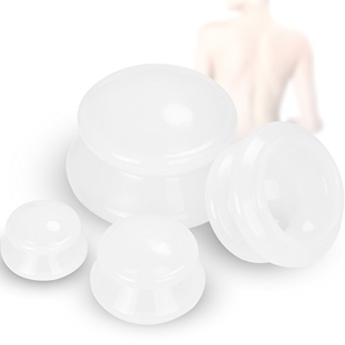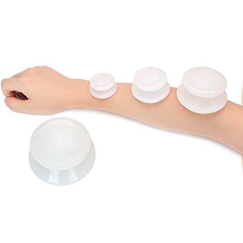 Silicone cups require no hand pumps, fire, and are safe. The soft material is comfortable on the skin for use in retaining cupping and massage moving cupping. With 4 different size cups. you can use the cups on any area of the body. 0