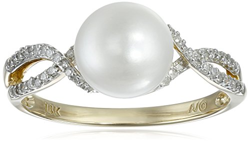 14k Yellow Gold Freshwater Cultured Pearl Interwoven Diamond Ring (1/10cttw, I-J Color, I2-I3 Clarity), Size 7