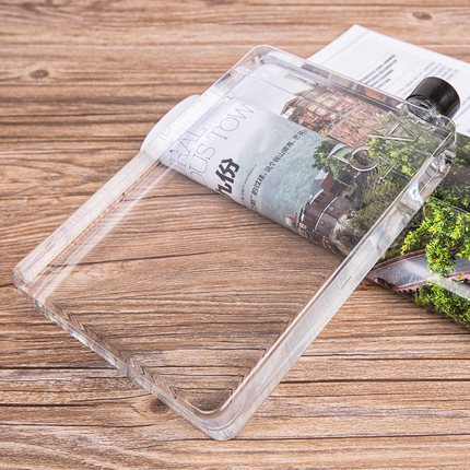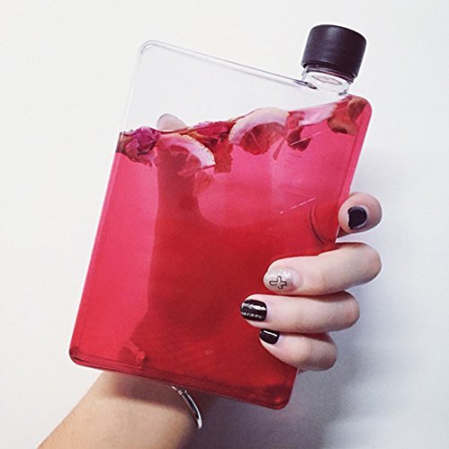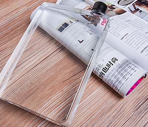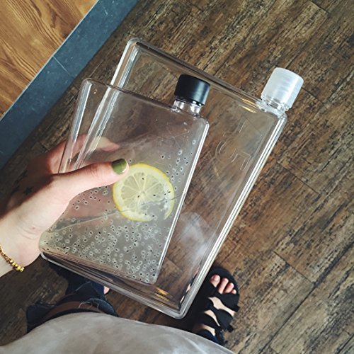 Mandydov A5 Memo Paper Bottle Flat Portable Notebook Water Bottle BPA Free with 3 Bottle Caps for School Activity Outdoor Sports (750ml)