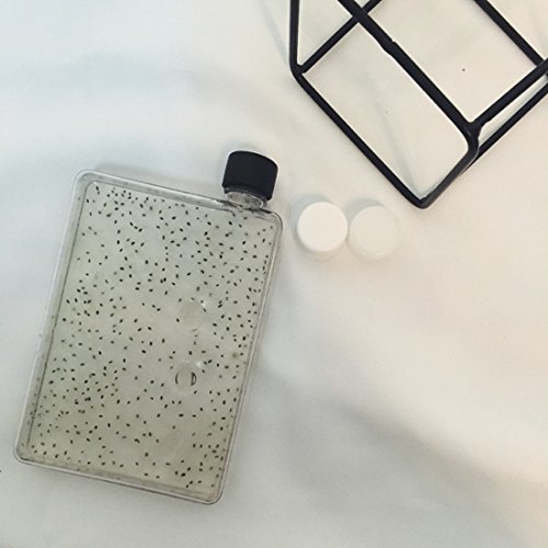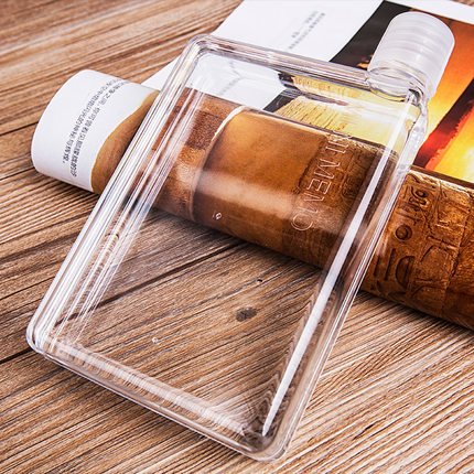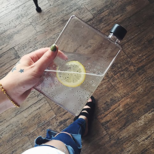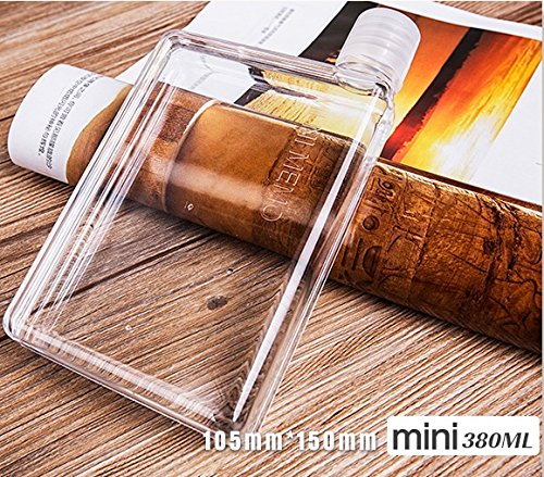 Mandydov A5 Memo Paper Bottle Flat Portable Notebook Water Bottle BPA Free with 3 Bottle Caps for School Activity Outdoor Sports (380ml)