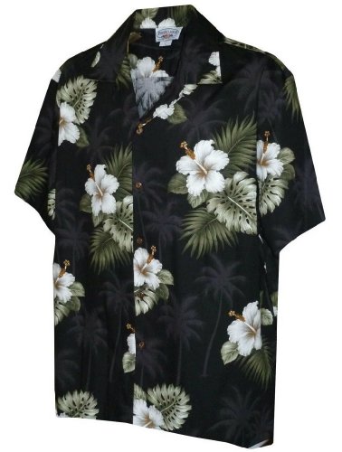 -. Title : Pacific Legend Men's Hibiscus & Palm Hawaiian Shirt (Black)