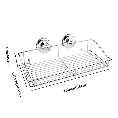 The Dimension of the bathroom suction shelf: 34*14.5*9cm. Basket: 33*14.5*5.5cm. The Diameter of the suction cup: 6cm (2.4 inch)